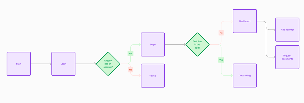 To gain a clearer understanding of the app's functionality, we initiated the process by sketching a basic user flow, focusing solely on the essential components of the application.
