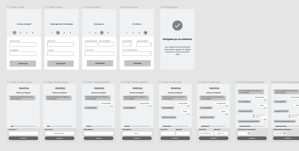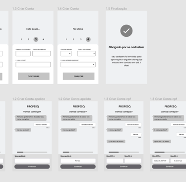Subsequently, in Figma, we began exploring the specifics of each page within the flow, refining the details and functionalities for a comprehensive visualization.