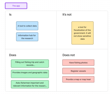 After all the conversations and workshops done with stakeholdersand the field research, we started mapping things we thought would be relevant to the app