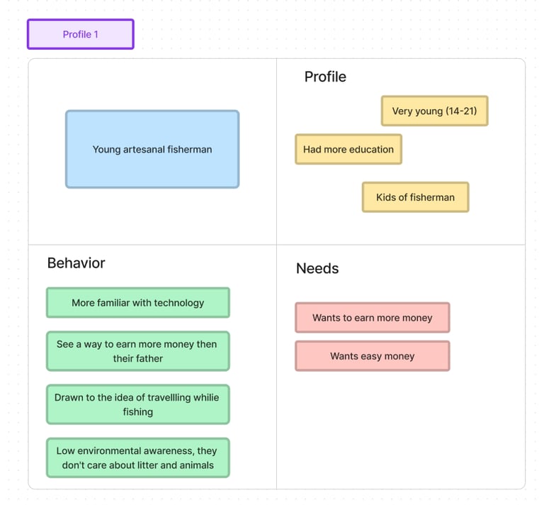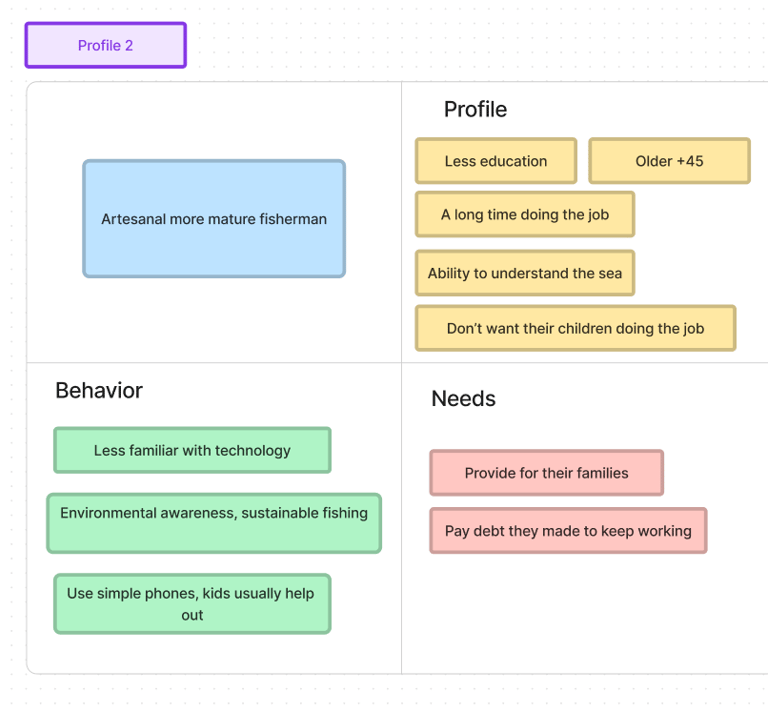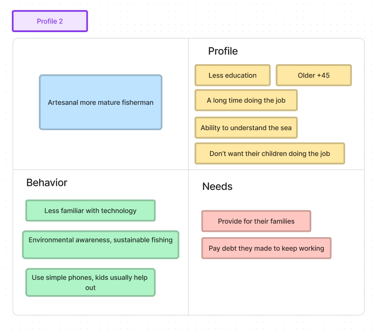 With stakeholders interviews, we were able to identify 2 main key profiles of fisherman
